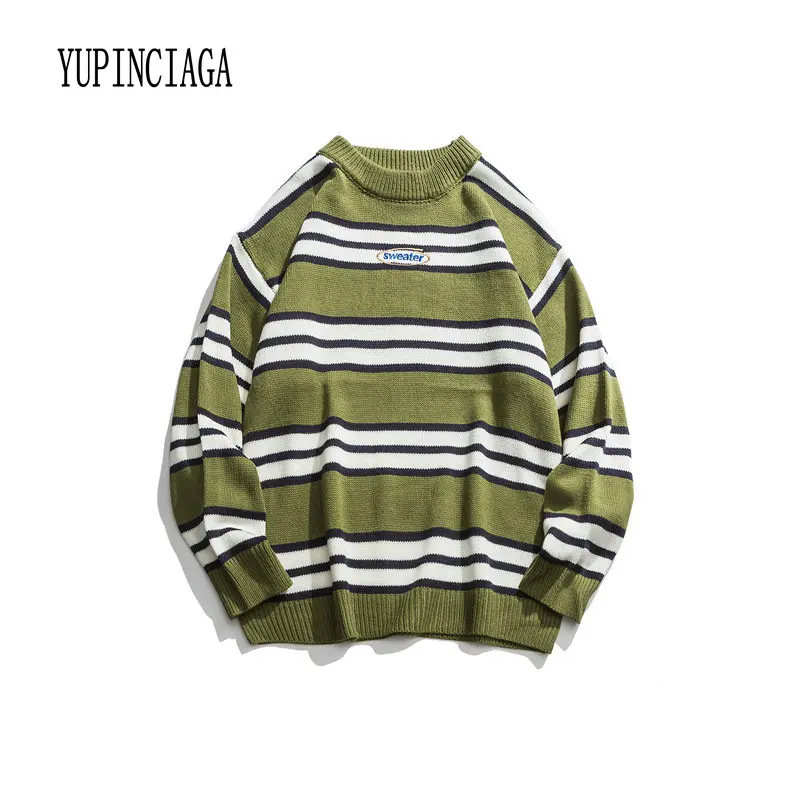Promo YUPINCIAGA 2020 Spring New Women Man Striped Sweater Round neck Knitted Letter Embroidery Sweate Loose Warm Jumper Pullovers