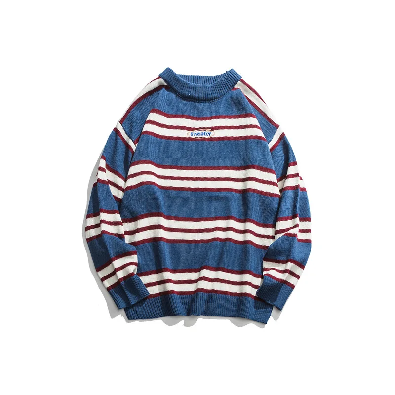 Images of YUPINCIAGA 2020 Spring New Women Man Striped Sweater Round neck Knitted Letter Embroidery Sweate Loose Warm Jumper Pullovers :